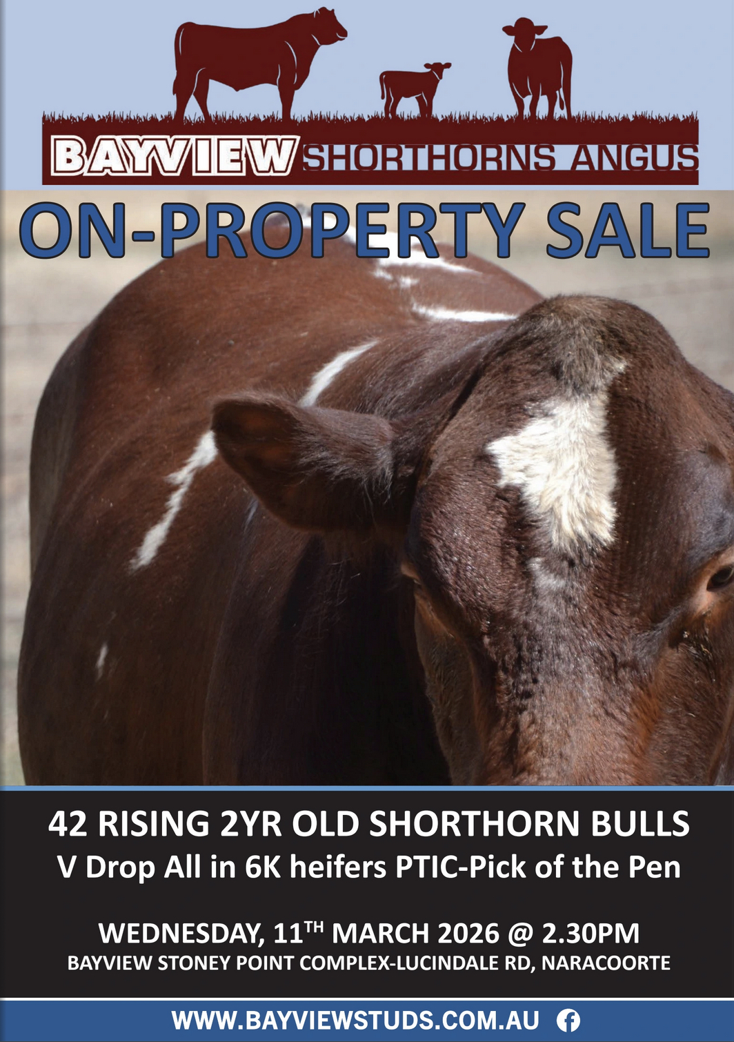 Sale will be held on Wednesday 11th March at 2:30pm at Bayview Stoney Point Complex, Lucindale Rd, Naracoorte, SA. Inspections from 11am.