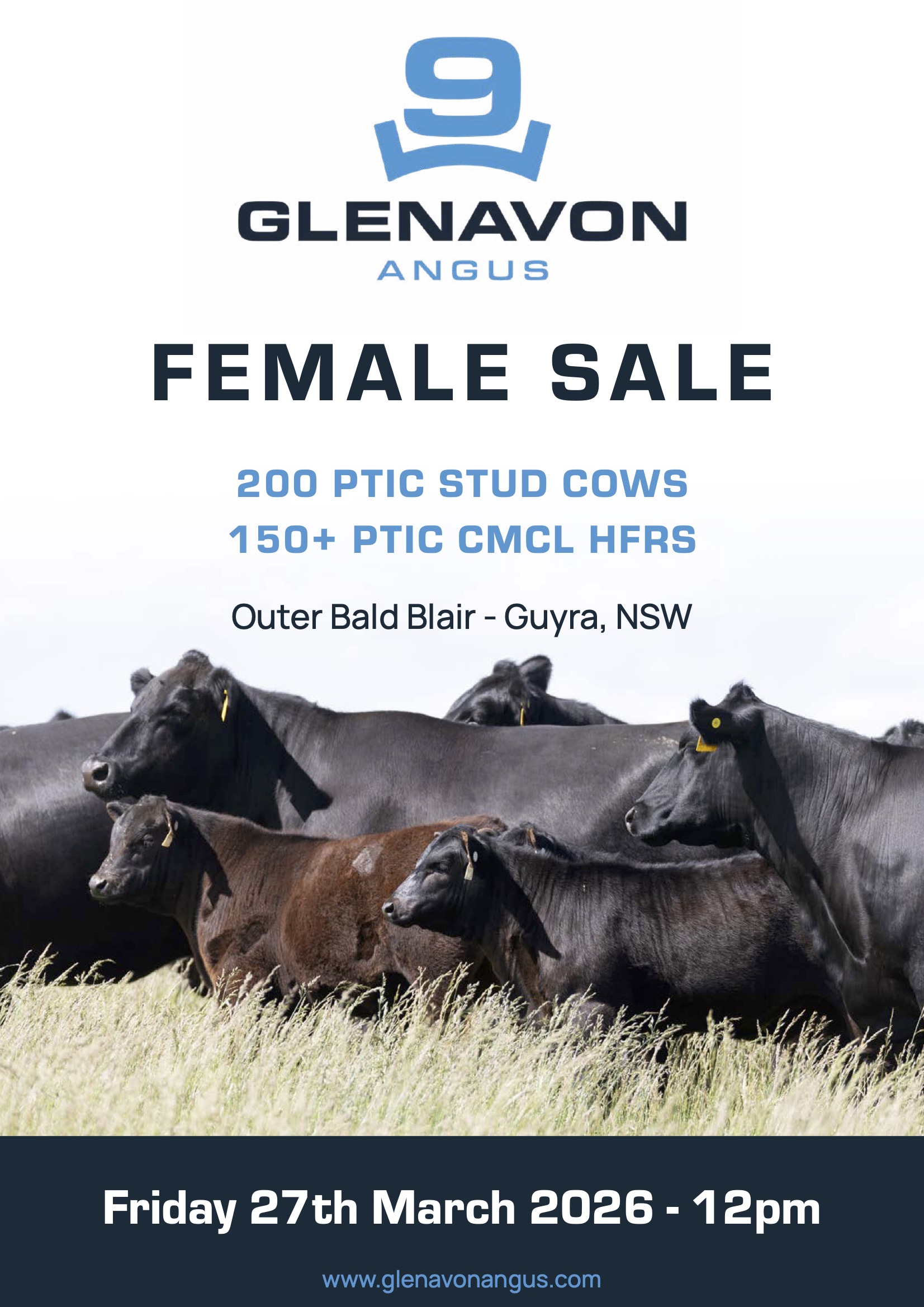 Friday 27th March at 12pm on Property at Guyra NSW and ONLINE with AuctionsPlus 200 PTIC STUD COWS | 150+ PTIC CMCL HEIFERS Inspections from 9:00 am